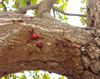Avocatier malade, des bulles de couleurs rouge/rouge bordeaux apparaissent au niveau du tronc et des tiges principales