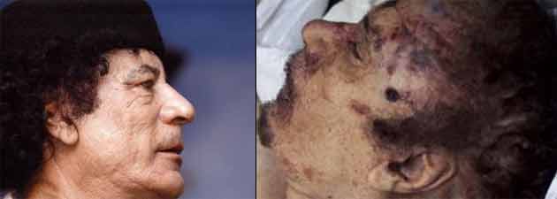 Selon ces mêmes sources l’Otan a inondé la toile de fausses nouvelles, l’homme capturé avait une couleur de cheveux claire alors que le cadavre présenté à l’hôpital avait les cheveux noirs, que le nez ne soit pas le même et le jour de la capture il pleuvait sur Syrte alors que sur les vidéos le temps était sec. Aussi Gaddafi avait fait une opération sur le ventre, mais le cadavre présenté ne pressentait aucune séquelle.
